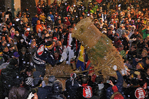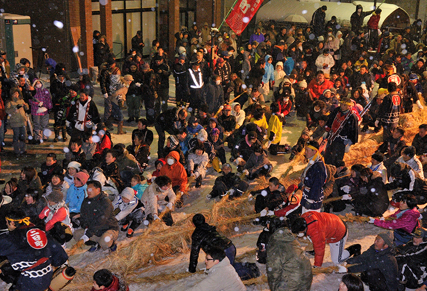 室町時代から伝わる「刈和野の大綱引き」は、一年のうちで最も寒い季節である2月、夜に開催されます。国の重要無形民俗文化財に指定されている行事で、上町と下町に分かれて綱を引き合い、その勝敗の行方でその年の米の出来や価格を占うものです。子どもから大人まで、幅広い世代が参加する当日、人々の熱気が刈和野の町を包み込みます。